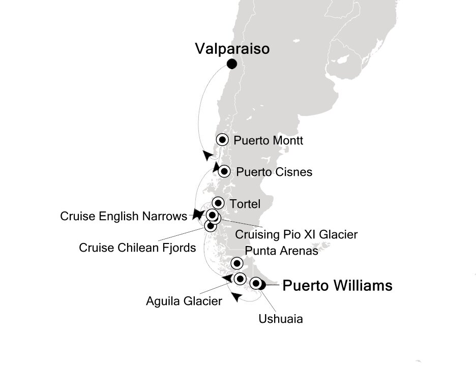 Once the most important merchant port on the Pacific trading routes of South America, Valparaiso is now a UNESCO World Heritage Site. With its bright, colourful buildings, incredible European-inspired architecture, and unique urban hillside design, Valparaiso offers a vibrant artistic culture in a laid-back environment. Ships will dock at the port.
