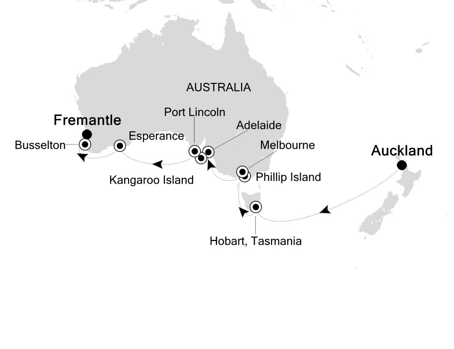 Remote and utterly remarkable, the easygoing town of Esperance has a coastline that would rival any in the world. Fine quartz sands edged by tumbles of rounded boulders meet placid ocean and endless islands. With some of the whitest beaches and clearest waters in Australia, this southern gem is worth the visit. Ships will anchor offshore and tenders will be provided to the pier.
