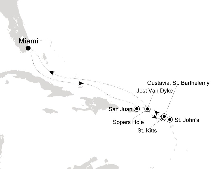 The British Virgin Island’s smallest island, Jost Van Dyke, runs deep with rugged scenery and colourful folklore. The island offers glowing turquoise waters, lazily bowing palm trees, and pristine white sand beaches. Ships will anchor offshore and tenders will be provided to the shore.