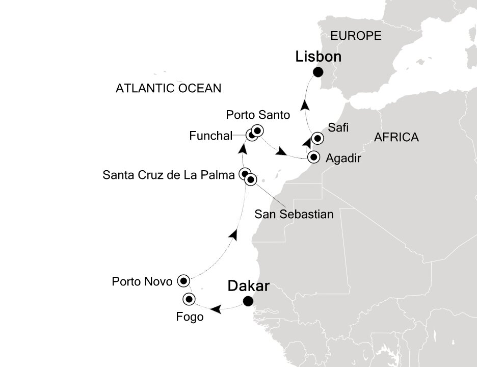 ‘La Isla Bonita,’ La Palma is one of the smaller of the Canary Islands. Its capital, Santa Cruz de la Palma, is a beautiful colonial-style city set on a picturesque harbour. The island’s landscape is one of black sand beaches, mountainous terrain and rich plant life. Ships will dock at the port of Santa Cruz de la Palma.