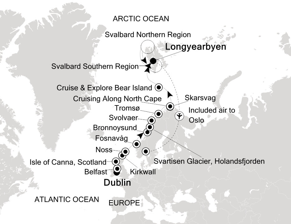 Svalbard’s Southern Region and specifically Spitsbergen’s west coast is less ice-clogged than the rest of Svalbard due to the moderating influence of the Gulf Stream. Several fjords cut into the west coast of Spitsbergen and remains of huts, mines and active scientific settlements can be found along these. Depending on the time of the season, glaciers can be visited on foot or by sea. Hornsund will reveal fascinating views of geological formations, craggy mountains, spectacular glaciers and a variety of seabirds and seals.