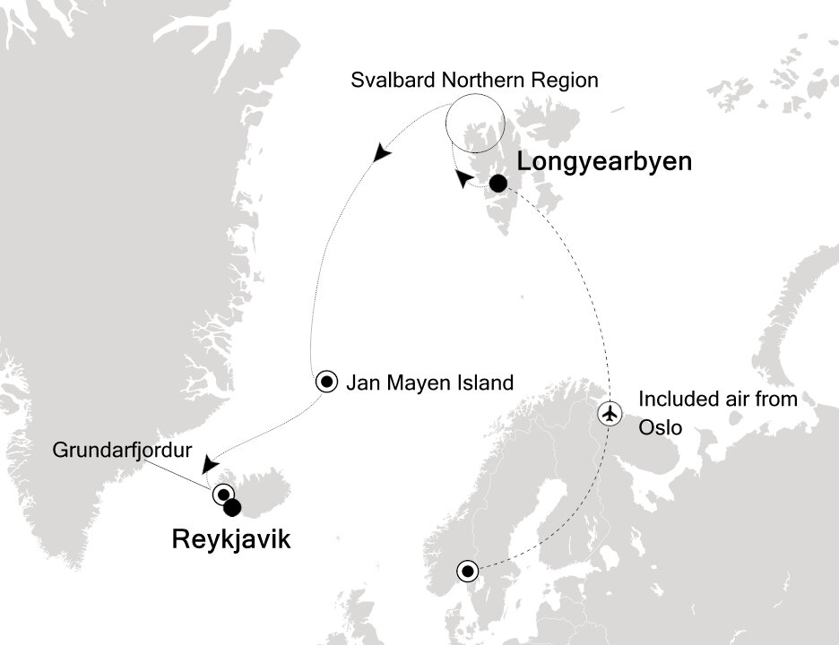 With permission from the Norwegian authorities, a landing is possible at this rarely visited outpost. Visitors may walk to the research and weather station, or beyond, for birds-eye views of the meteorological station and the long black sandy eastern shore of the island.