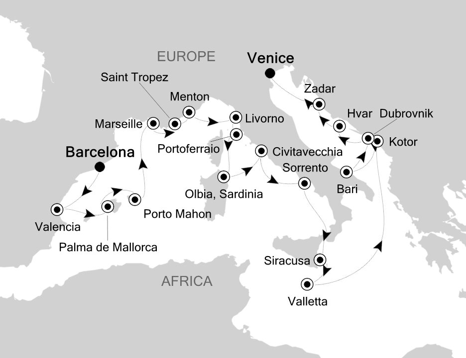A glitzy, glamorous coastal resort, Saint Tropez is the French Riviera hotspot of choice for A-listers and flotillas of gleaming yachts. While spectacular white sand beaches line the Gulf de Saint-Tropez, the Provencal countryside rises up behind the town with medieval villages, vineyards and lavender fields. Ships will anchor offshore and tender guests to shore.