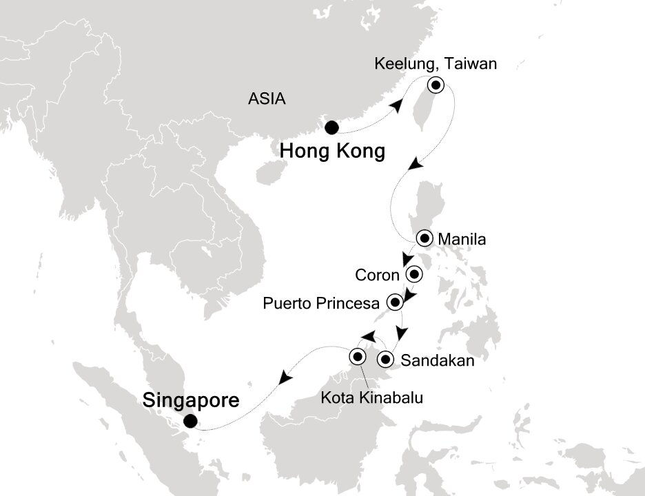 The capital city of Palawan Island in the Philippines is a fascinating landscape of caves, forests, and coastline. Often acclaimed as the cleanest and greenest city in the Philippines, it offers a wealth of attractions such as turquoise water, white-sand beaches, underground rivers, and wildlife reserves. Ships will dock at the port.