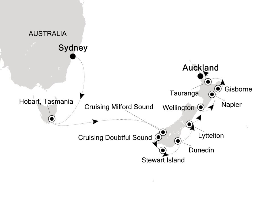 The Bay of Islands, a stunning archipelago encompassing 144 islands and including the boutique towns of Opua, Paihia, Russell and Kerikeri, is famed for its turquoise waters and rich Māori history. Take a boat tour to explore the iconic Hole in the Rock or spot dolphins. Visit Russell, a picturesque town with colonial history, or the Waitangi Treaty Grounds, where New Zealand’s founding document was signed. Your ship will anchor in the bay, just off Russell, and you'll tender ashore.