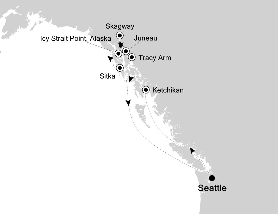 Venture 'where the north wind doesn’t blow' and discover Icy Strait Point. This uniquely Alaskan port is one of the few places in the world where wildlife outnumbers the human population. Pine trees as tall as skyscrapers, humpback whales, eagles, wild salmon, black bears and more form the harmonious tapestry of life in this Alaskan hinterland. Ships will dock at this port.