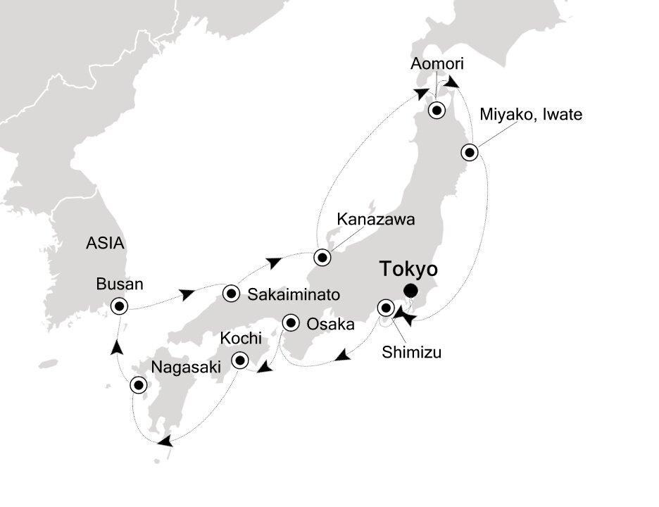 Honshu's northernmost city is full of picturesque historic temples, museums, and close to incredible nature like Mt. Hakkoda. In the spring and summer, Aomori bursts to life with cherry blossom festivals and the fiery Nebuta Festival every August. Ships dock at the Shin-Chuo wharf.