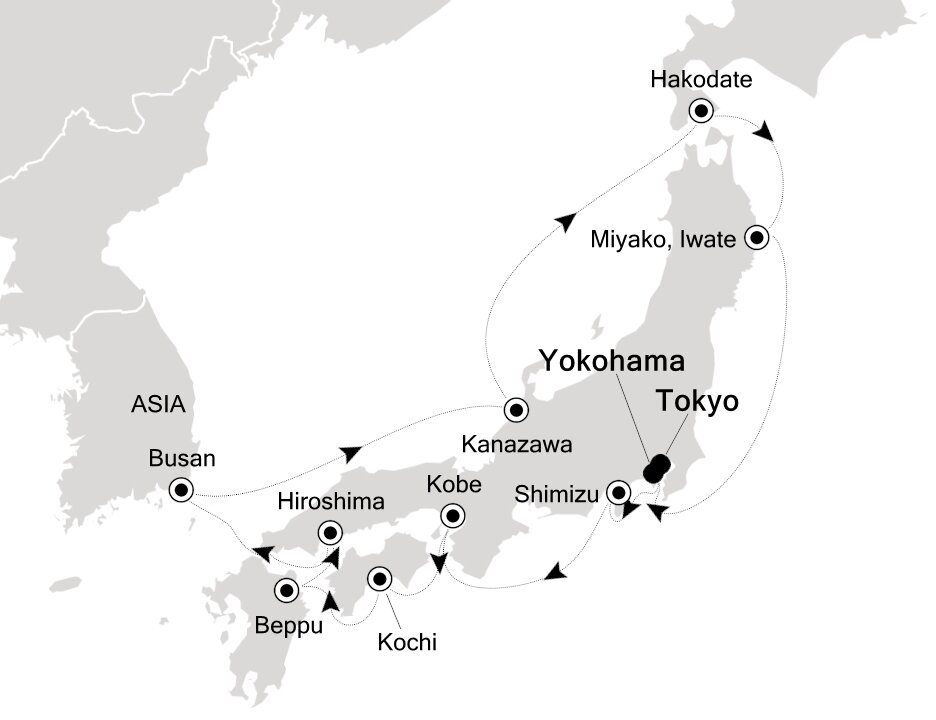 Overlooking Beppu Bay to its east and dramatic mountain peaks to the west, Beppu is blanketed with misty turquoise waters and elegant Japanese foliage. Its main attraction is the 'Hells of Beppu,' a collection of 8 onsen, or hot springs, some of which feature geysers and colourful waters ranging from white to copper to sapphire. Ships will dock at the port of Beppu.