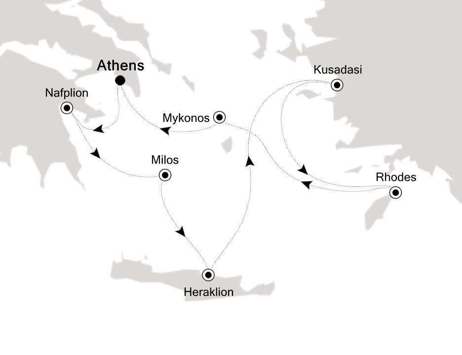 The most southwestern of the Cyclades archipelago, Milos is an island shaped by time, history and natural forces. Best known as the place where the Venus de Milo statue was discovered, the island offers an exciting variety of landscapes, impossibly blue waters and an intimate side of Greece. Ships will anchor offshore and tenders guests to shore.