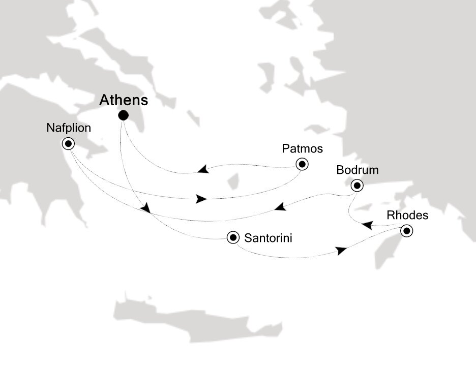 Patmos Island boasts idyllic beaches, swimming coves and historic hilltop mansions. Though many are drawn to Patmos for its natural beauty and seclusion, the island is also famous for being the location where St. John penned the Book of Revelations. Small ships will dock in the port town of Skala, while large ships will anchor offshore and tender guests to Skala.