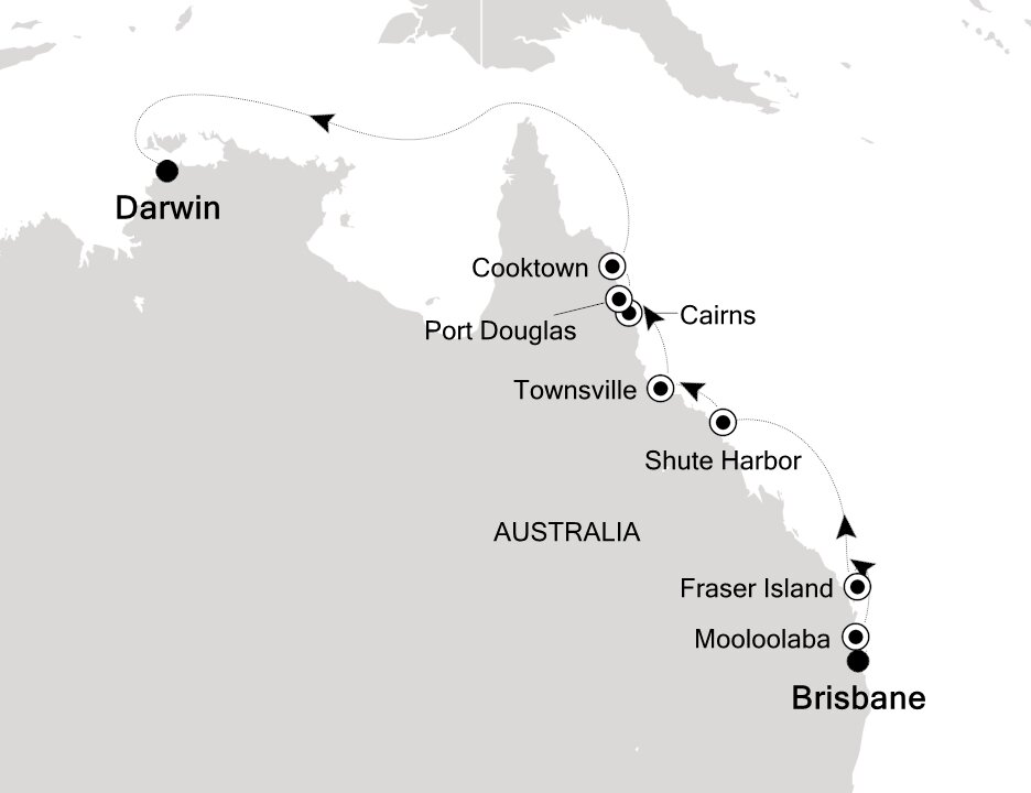 A quaint frontier town, scenically located on Cape York Peninsula in Far North Queensland, Cooktown is the site of Australia’s first European settlement. It is a beautiful, unspoilt, small historic coastal town surrounded by stunning countryside. Ships will anchor offshore and tenders will be provided to the port.