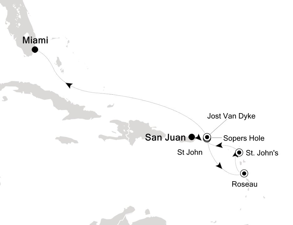 The British Virgin Island’s smallest island, Jost Van Dyke, runs deep with rugged scenery and colourful folklore. The island offers glowing turquoise waters, lazily bowing palm trees, and pristine white sand beaches. Ships will anchor offshore and tenders will be provided to the shore.
