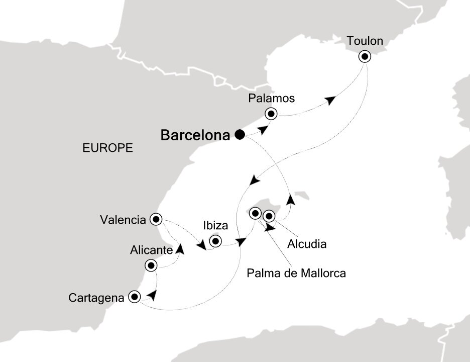 Your cruise finishes today in Barcelona, a captivating city on Spain's northeastern coast. If you're extending your stay in the city, start with a visit to La Sagrada Família, Antoni Gaudí's masterpiece, then wander through the narrow, historic streets of the Gothic Quarter.