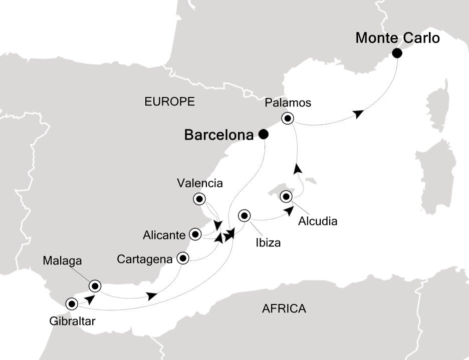 Málaga is the lively capital of the Costa del Sol, famed for its beaches and mild climate. It is a city of narrow streets, whitewashed houses, churches and sunny plazas. Málaga also serves as a popular starting point for excursions to splendid Granada and the famed Alhambra. Ships will dock at the Málaga cruise terminal.