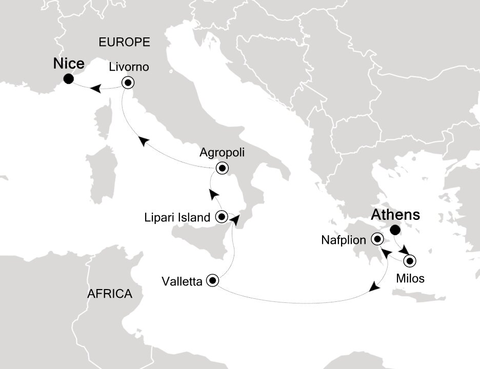 The most southwestern of the Cyclades archipelago, Milos is an island shaped by time, history and natural forces. Best known as the place where the Venus de Milo statue was discovered, the island offers an exciting variety of landscapes, impossibly blue waters and an intimate side of Greece. Ships will anchor offshore and tenders guests to shore.