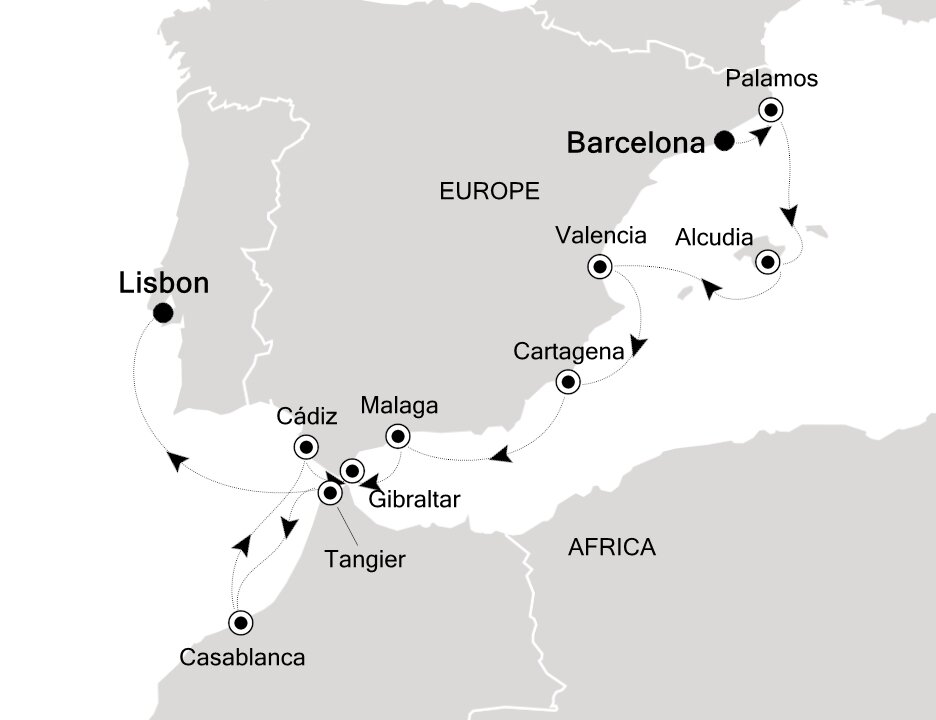 Málaga is the lively capital of the Costa del Sol, famed for its beaches and mild climate. It is a city of narrow streets, whitewashed houses, churches and sunny plazas. Málaga also serves as a popular starting point for excursions to splendid Granada and the famed Alhambra. Ships will dock at the Málaga cruise terminal.