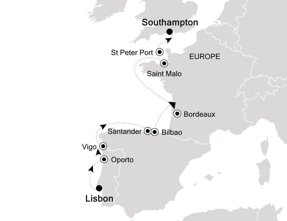 Surrounded by green mountains and lined by the beautiful blue water of the Bay of Biscay, Bilbao is magnificent mix of historic and spectacular modern architecture. Famed for its Guggenheim Museum, clad in glimmering titanium, this enormous structure is a work of art itself. Ships will dock in Getxo, which is a 20 minute drive from Bilbao.