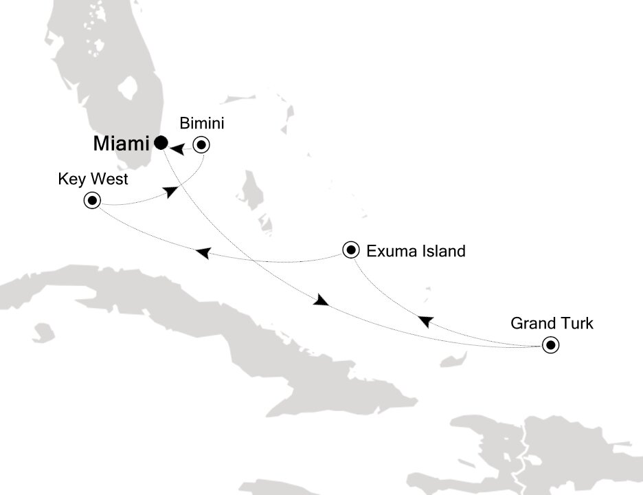 This multicultural city where the sun rules supreme is more than just a cruise port. Palm-lined causeways stretch across luminous Biscayne Bay as Miami rises in a gleam of glass towers, Art Deco curves, and tropical colour. Along Ocean Drive in South Beach, pastel facades from the 1930s glow beneath the Florida sun, while nearby Little Havana hums with domino parks, cigar shops, and the aroma of Cuban coffee. Beyond the shoreline, calm waters, yacht marinas, and breezy promenades frame a city shaped by Caribbean rhythms and sunlit coastal glamour.