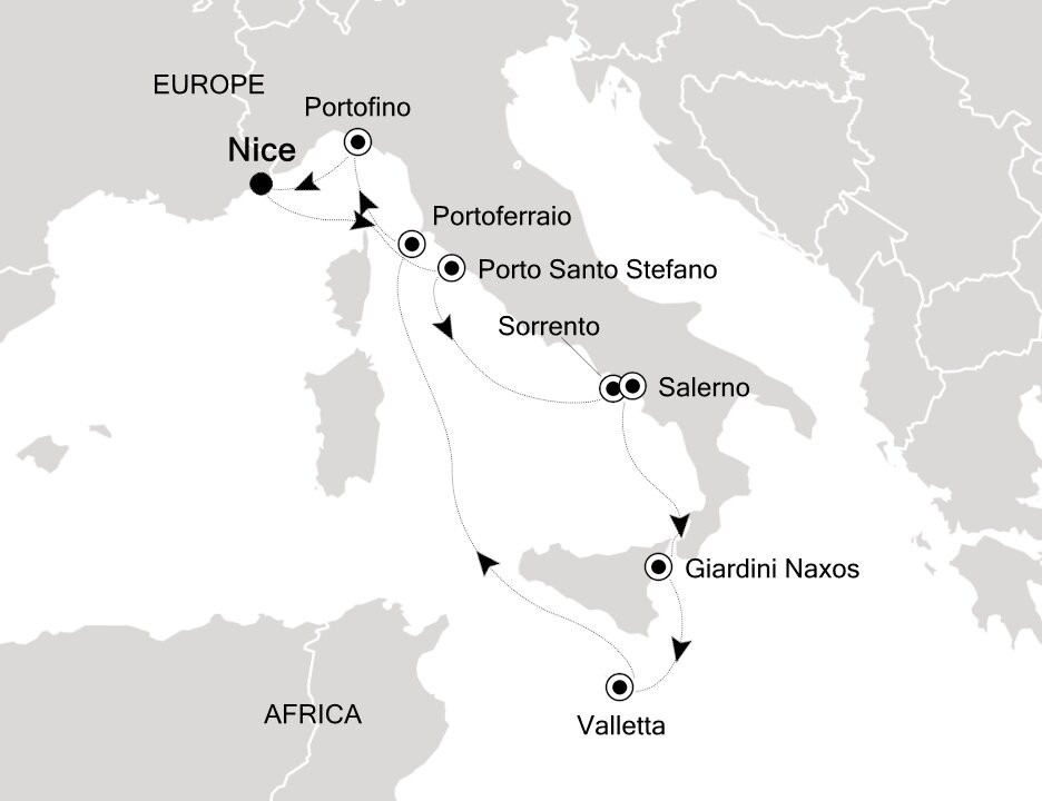 Sorrento's colourful, sun-faded facades cascade down from green hills and cliffs to the Bay of Naples. Looking out from Sorrento, in the Gulf of Naples, is the isle of Capri. Well known for its sparkling Blue Grotto and as the playground of the rich and famous. Ships will anchor offshore and tenders will be provided to the marina.