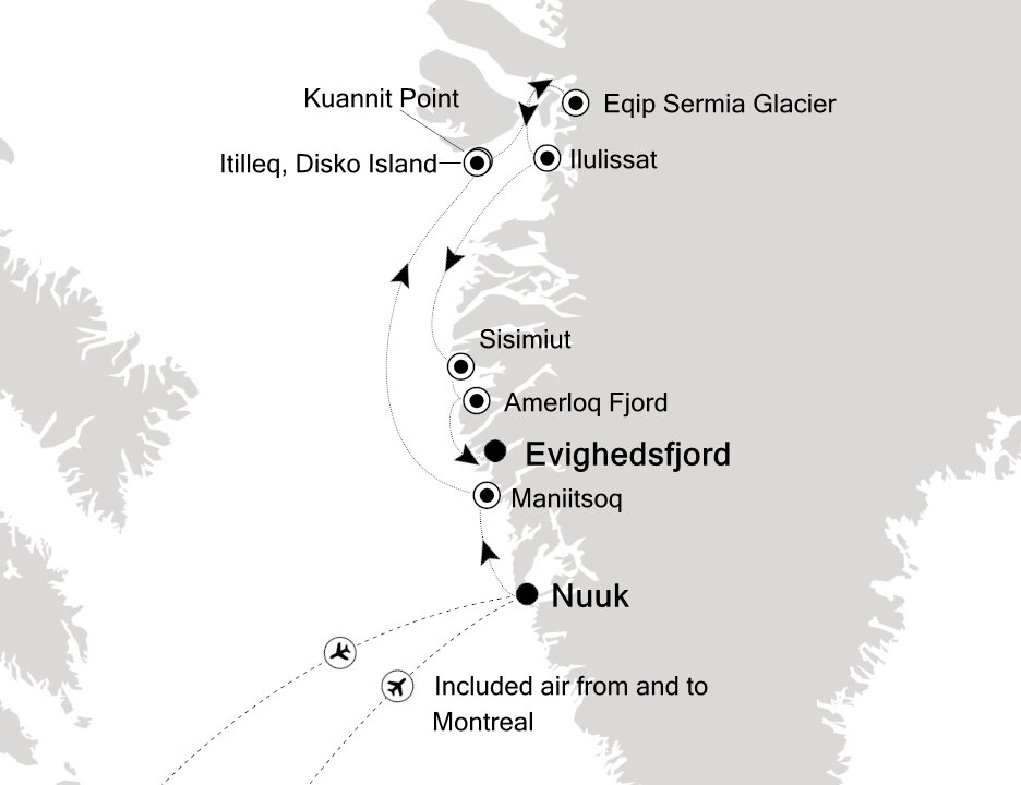 Ilulissat, located on the west coast of Greenland, is renowned for its breathtaking natural beauty and unique Arctic experiences. The town sits adjacent to the Ilulissat Icefjord, a UNESCO World Heritage site where colossal icebergs calve from the Sermeq Kujalleq glacier into the sea. This dramatic landscape offers stunning views and is a prime spot for witnessing the majesty of Greenland's ice formations.