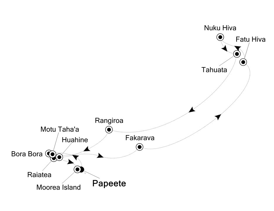 Meaning 'Faraway Heaven,' Raiatea is an island of astounding beauty, ancient myths and home to French Polynesia's largest outdoor temple (marae). Many believe it is the centre from which the great Polynesian migration started and is considered the most sacred island in the South Pacific. Ships will dock at this port.
