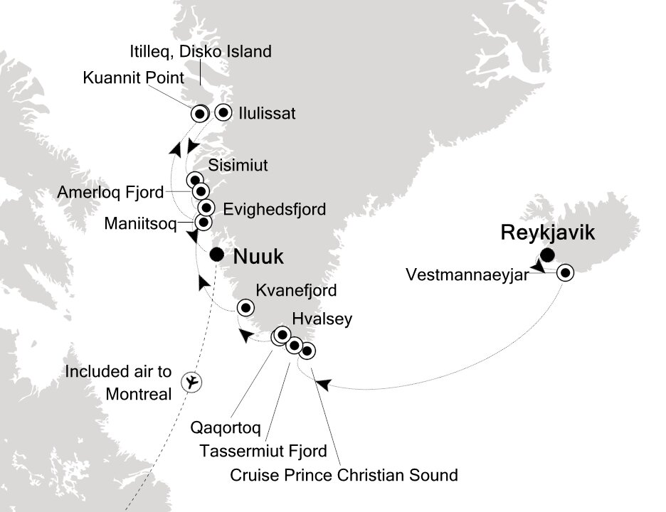 The largest town in southern Greenland, colourful Qaqortoq rises steeply over the fjord system around the city, offering breath-taking panoramic vistas of the surrounding mountains, deep, blue sea, Lake Tasersuag, icebergs in the bay, and pastoral backcountry. Ships will anchor offshore and tender guests to shore.