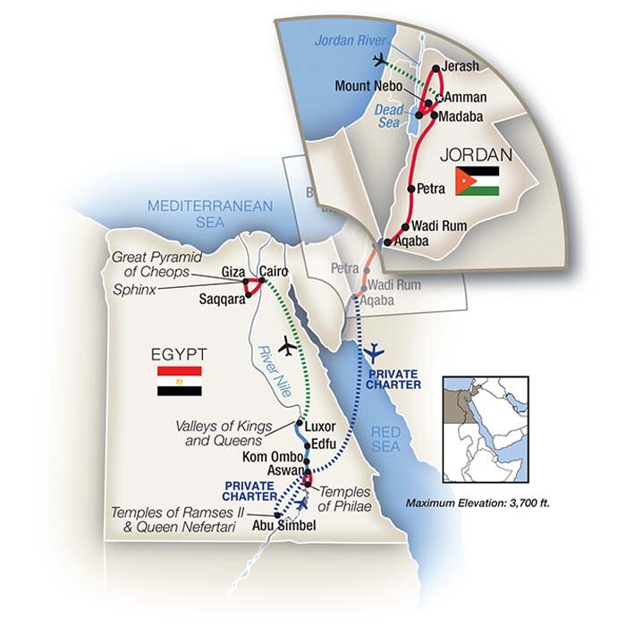 Thousands of years of biblical history unfold today on a visit to Mt. Nebo where you will see the view Moses saw when he looked out over the Promised Land. Continue to Madaba for a visit to St. George Greek Orthodox Church where the remains of the oldest known map of the Holy Land, painstakingly assembled from more than a million pieces of colored stone, cover the church floor. Enjoy a fabulous lunch at a local, family-run restaurant, then drive to the ancient Nabataean city of Petra, carved out of sandstone cliffs around 6 BC, where your hotel is just steps away from the archaeological site. Dine at your choice of restaurants at the hotel. Stay Two Nights: Movenpick Resort Petra (B/L/D)