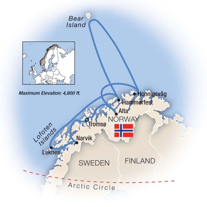 Tour Ends: Tromsø. A transfer is included from your ship to Tromsø Airport. Please allow up to three hours for check in. (B)