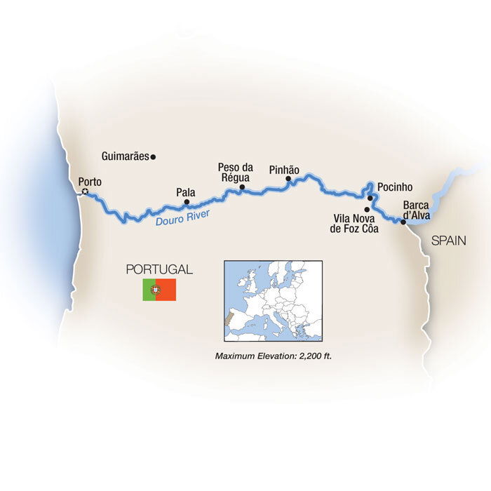 The Douro River Valley and its unique landscapes of terraced mountains, villages, and wine estates unfolds today on a full day's sail to the small Spanish port town of Vega de Terron, where the Douro forms the border between Spain and Portugal. The landscape, at a confluence of rivers, is tranquil, beautiful and unspoiled, at the edge of Douro International Natural Park. (B/L/D)