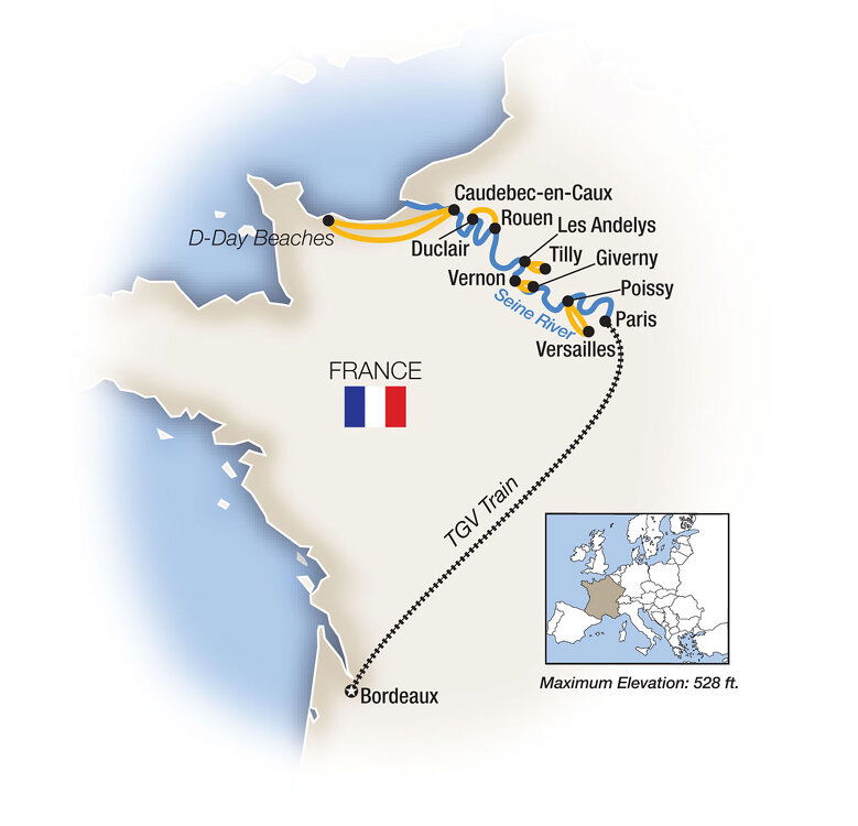 Alternatively, explore by bicycle through the Gardens of Versailles, among the largest and most spectacular in the world and contains over 400 statues, making it the world's largest open-air sculpture museum. Return to your riverboat to learn local insights from your Tauck Director, following a cocktail hour, and dinner at your leisure. Your ship charts for Rouen this evening. (B/L/D)