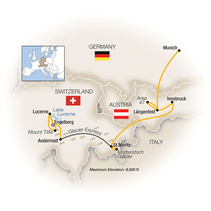 Get a closer look at the Alpine wonderland that surrounds you today as you ride to the top of Mount Titlis aboard a cable car for lunch and either an exciting zip-line adventure or free to enjoy as you wish on the mountaintop. Descend down the mountain and join your Tauck Director for an orientation walk of Lucerne followed by free time to discover spires, covered bridges, fountains and more before a dinner cruise on glacial Lake Lucerne. (B/L/D)