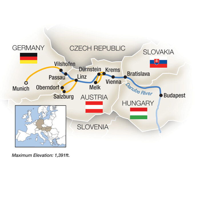 Another choice is to discover Old Town as you play a geo-caching game with a local guide. Or go on a guided hike with a holiday theme and interactive storytelling. Enjoy some free time in Passau before returning to your riverboat. As you to sail on to Linz in Austria, your Tauck Directors and Cruise Director have lots of fun activities planned for your family to share onboard ship, including holiday karaoke! (B/L/D)