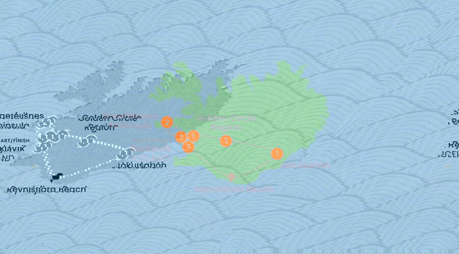 ðrottle1ðrottle1Wrap up warm, we've got another day of outdoor discovery. And what better way to start the day than with a visit to more awesome waterfalls. Walk behind Seljalandsfoss to see the world from a new angle. Learn the legend of Skógafoss and dare to find the treasure chest left by a Viking settler way back in the year 900. Then: discover the South Coast, including the Laki lava fields. You wanted to delve deeper into Iceland? This is it.
