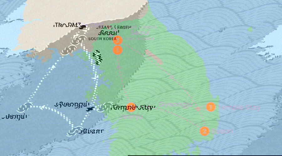 First up: Gamcheon Village. Colourful in every sense of the word. Bonus points if you snap a pic with the BTS mural. Grab a late lunch at Jagalchi Fish Market or Gukje International Market. You'll probs find something at the latter, unless raw fish (not sushi) is your thing. You do you, no judgement. And tonight? You'll want in on the optional activity we've got lined up. A K-pop dance class. Learning how to dance like Blackpink in South Korea should be on everyone's bucket list and you're the lucky soul that gets to do it. Stay: Stanford Inn Busan or similar (B)