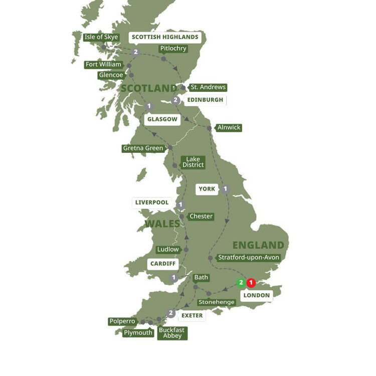Our first stop today is in the ancient port city of Plymouth, where we'll delve into the history of the brave Pilgrim Fathers who set sail for an unknown New World from its shores. See the Royal Citadel overlooking Plymouth Sound and consider an optional cruise around the dramatic coastline. We take a step back in time at our next stop – the delightful village of Polperro. Continuing along the brooding moorland of Dartmoor, we arrive at Buckfast Abbey, where we'll Dive Into Culture and discover how Benedictine monks have lived and prayed here for over 1,000 years. (B)