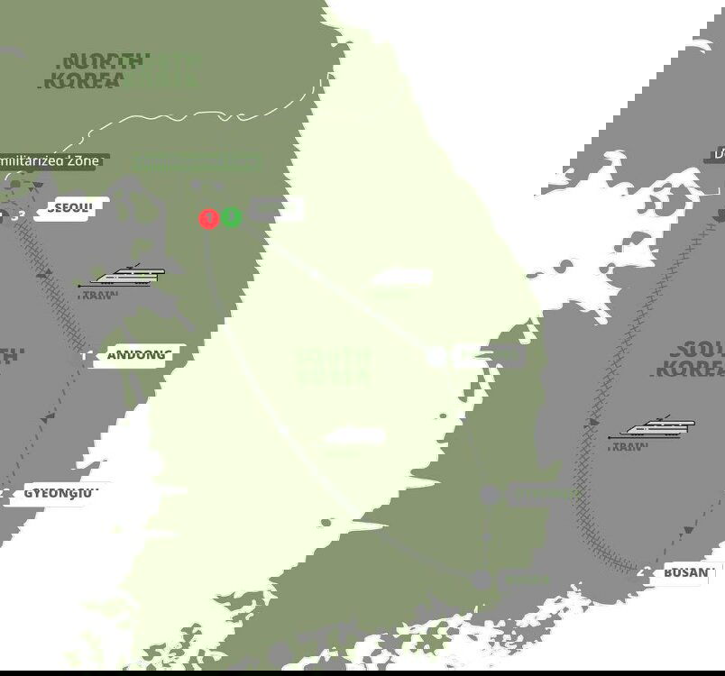 Checking out of Busan, board your final high-speed train back to Seoul, racing through the countryside in comfort.