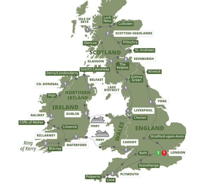 Arrive in Glasgow for an orientation tour with your Travel Director. Take in the city's highlights including the 12th-century cathedral and George Square, surrounded by grand architecture and monuments to some of Scotland's notable figures. (B) Stay: Novotel, Hilton Garden Inn City Center