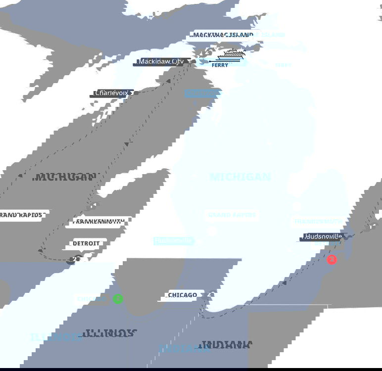After exploring Mackinac Island, the Great Lakes, and the rich history of the Midwest, it's time to say goodbye to your Travel Director and fellow travellers before heading to the airport for your onward travels. (B)
