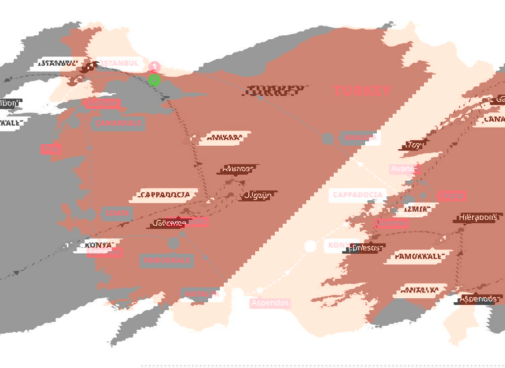 Stand at the ancient crossroads between Europe and Asia, embarking on a journey of discovery through ancient lands and the marauding empires who fought to rule it. Arriving in vibrant Istanbul, you will be transferred to your hotel before joining your Travel Director and fellow travellers for a memorable dinner to kick off your epic adventure. (D) Stay: Arts Taksim