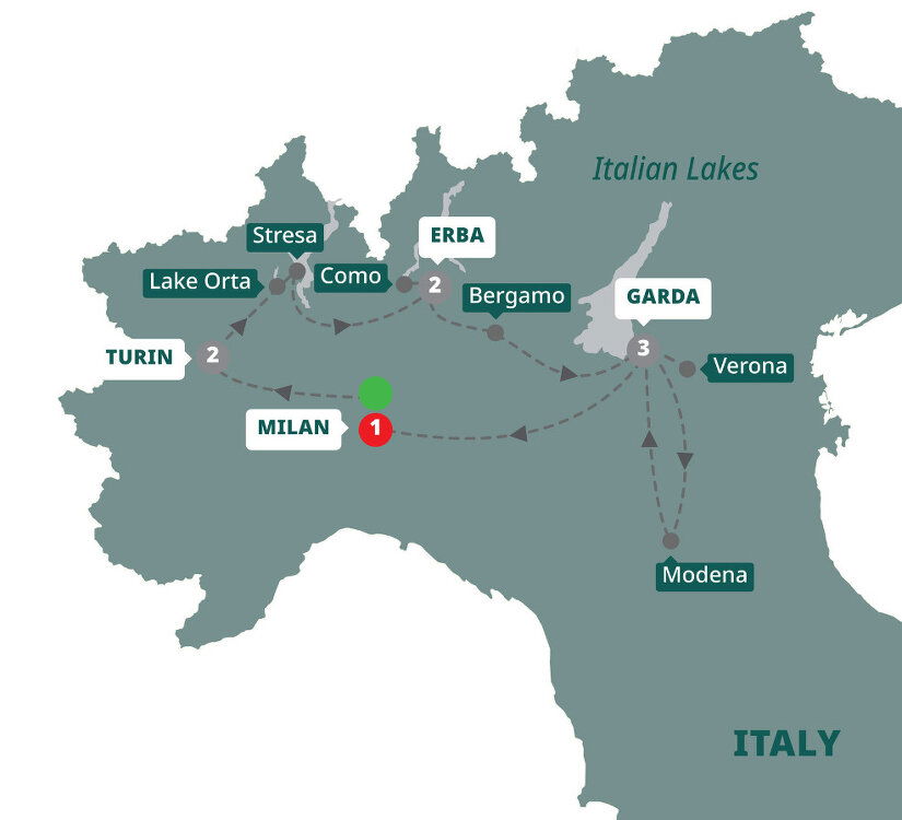 Welcome to Turin, the starting point for a journey through Italy's northern countryside and lakes. Meet your Travel Director and fellow travellers and get to know one another over dinner, sharing your first taste of regional flavours. (D) Stay: AC Hotel by Marriott Torino