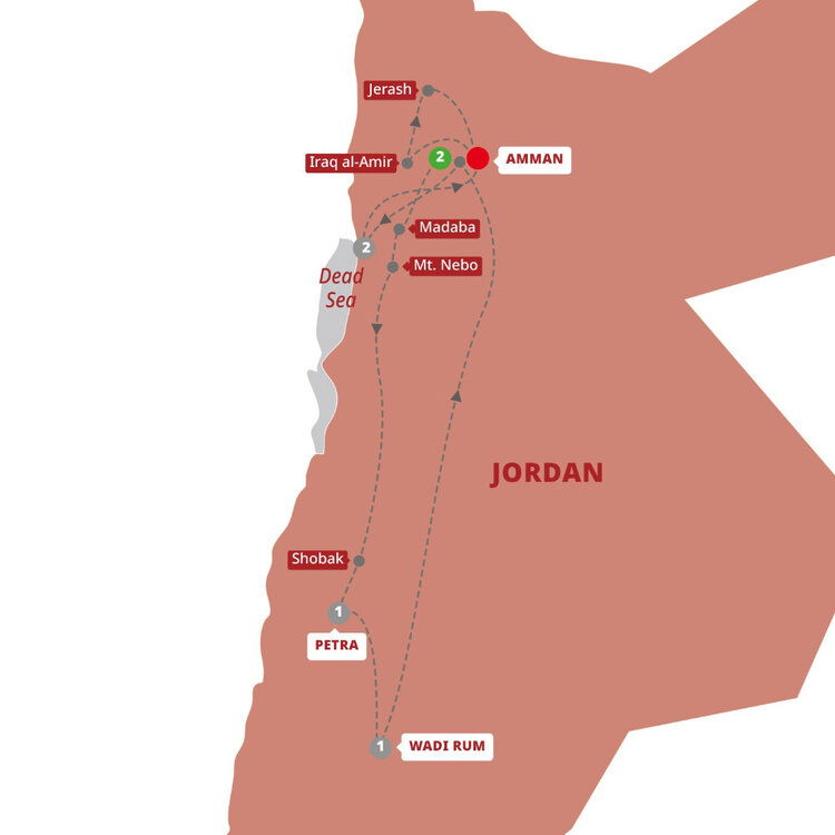 The rose-red facades of Petra, one of the Seven Wonders of the World, are waiting. Journey along the King's Highway to Mount Nebo, where Moses is said to have seen the Promised Land. See the 6th-century Madaba Mosaic Map and explore the crusader stronghold of Shobak Castle.