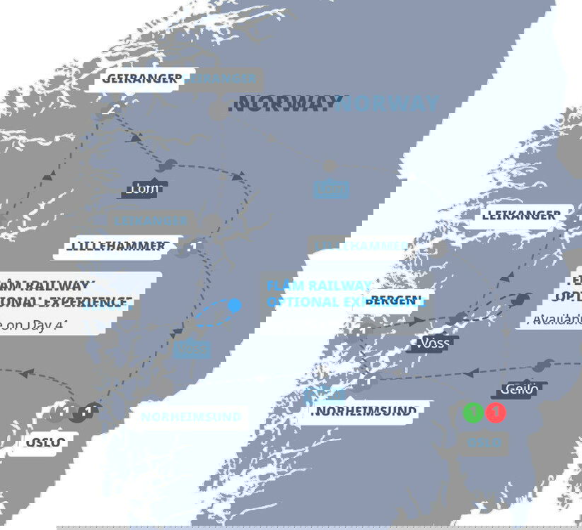Delving straight back into Norway's inspiring natural landscapes, we continue to the 'King of Fjords', travelling via Voss, the country's adventure capital. There's some free time to embark on an Optional Experience on the Flåm Railway, one of the most beautiful train journeys in the world. (B/D) Stay: Leikanger
