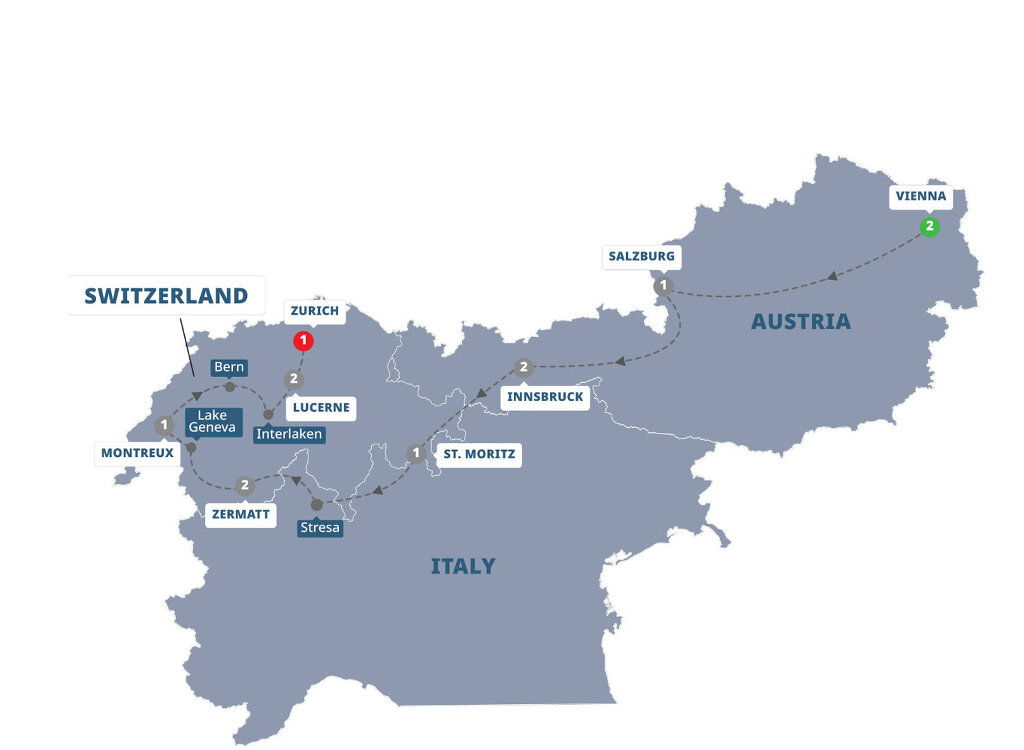 You'll continue to Zürich to discover its historic centre including the Munster Bridge, Paradeplatz, Lindenhof Square and other enchanting locations. Join a MAKE TRAVEL MATTER® Experience for a social-impact guided walking tour of the old town Zurich. This evening, toast to your epic journey over dinner with your fellow travellers. (B/D) Stay: Hyatt Place Zurich Airport The Circle, Hyatt Regency Zurich Airport The Circle