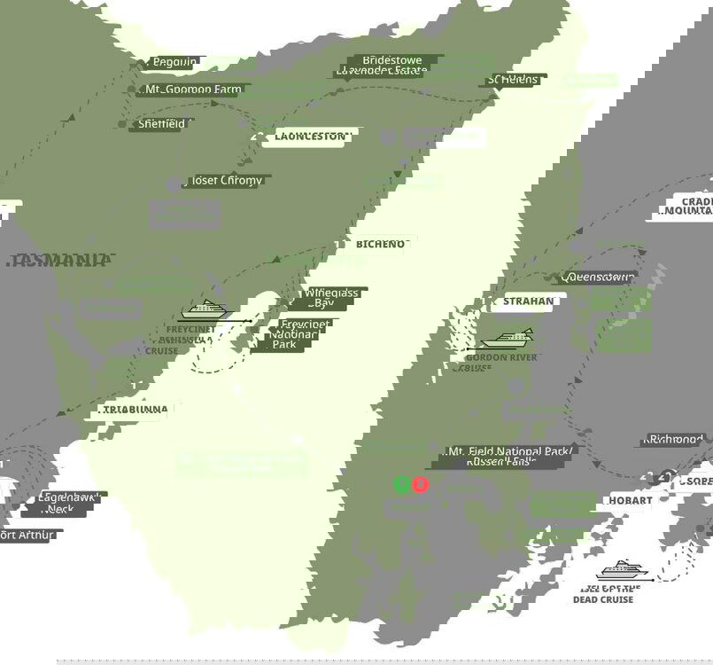 This morning after breakfast, we say farewell to our newfound friends as your Australia tour comes to an end and you are transferred to Hobart Airport (flights anytime). It's been a big week for adventuring, sightseeing, and tasting the best of Tasmania and we hope to see you again soon! (B)