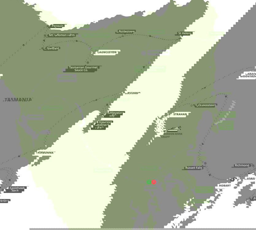 Trade the city for Tasmania's west, where the landscapes shift from quiet beauty to big wilderness. Walk through Mt. Field National Park and see Russell Falls spill through a forest of towering trees and fern-lined paths. Stop at Lake St. Clair, Australia's deepest natural freshwater lake, before travelling through the Franklin-Gordon Wild Rivers National Park. Your day ends in Strahan, a peaceful harbour town on the wild West Coast, set beside vast Macquarie Harbour.