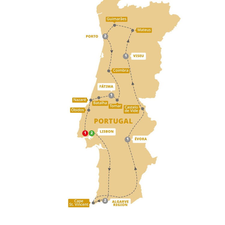 The dramatic landscapes of the Sagres Peninsula provide a stunning backdrop for our morning drive. Admire spectacular views across Baleeira Beach, before continuing along the coast to Cape St. Vincent, the site of many sea battles centuries ago. Enjoy your free afternoon in the resort town Lagos – once the home of Henry the Navigator. (B)