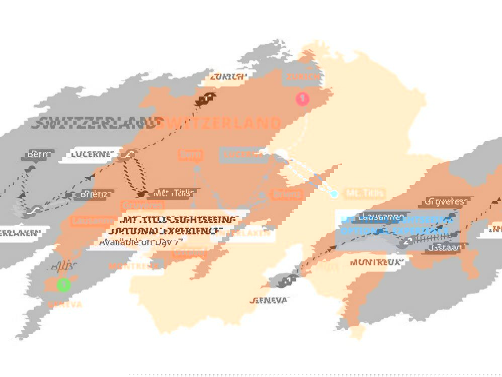 With a full day to explore Lucerne your way, you'll be thrilled with whatever you choose to do. Your Travel Director is on hand to share their local tips on how best to spend your day, whether that's finding a few sweet treats to take home or choosing that Swiss watch you've always wanted as a memento of your magical time in Switzerland. There's plenty of time to live out your winter wonderland fantasy on our Optional Experience visit to Mount Titlis. (B)