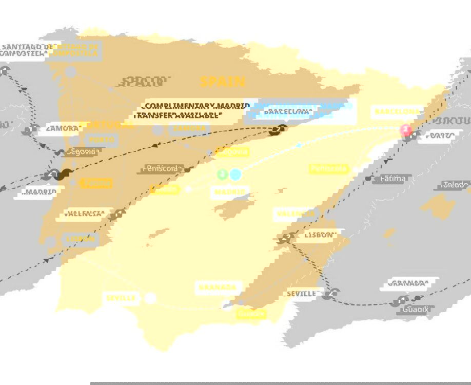 Kick-start your epic encounter with Spain and Portugal in Europe's highest capital city, Madrid. Spend your day rambling along tree-lined boulevards and people-watching in the city's lively squares before joining your fellow travellers and Travel Director for a dinner and orientation drive past some of Madrid's most iconic sites. (D) Stay: Barceló Imagine