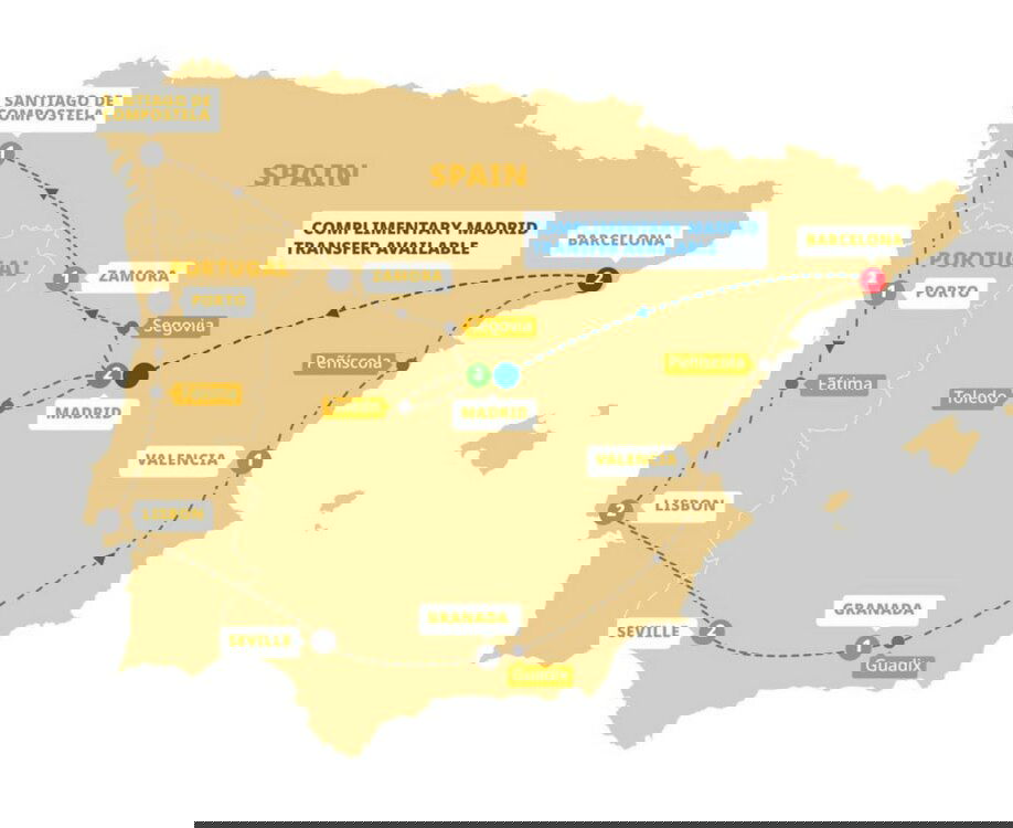 Venture to Segovia and see the Roman Aqueduct, by far the most impressive Roman structure in Spain - delivering drinking water across its impressive 160 arches to the people of Segovia in ancient times, view the Alcázar of Segovia. Travel to the city of Zamora in the Castile and Leon region. Your orientation walking tour includes views of the Plaza Mayor and the Church of Mary Magdalene.