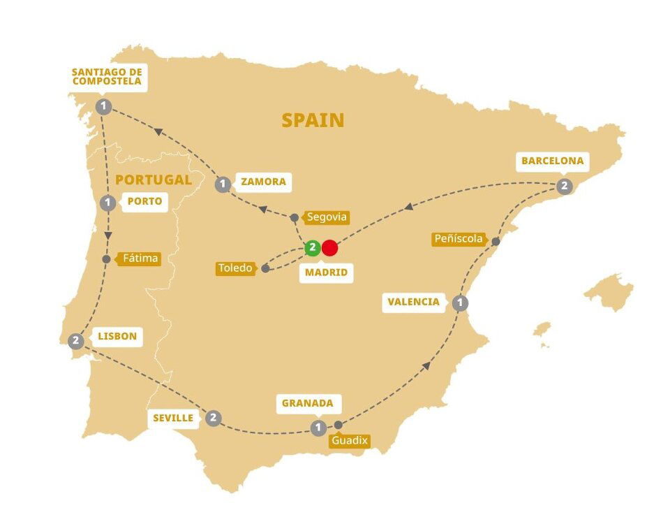 Kick-start your epic encounter with Spain and Portugal in Europe's highest capital city, Madrid. Spend your day rambling along tree-lined boulevards and people-watching in the city's lively squares before joining your fellow travellers and Travel Director for a dinner and orientation drive past some of Madrid's most iconic sites. (D) Stay: Barceló Imagine